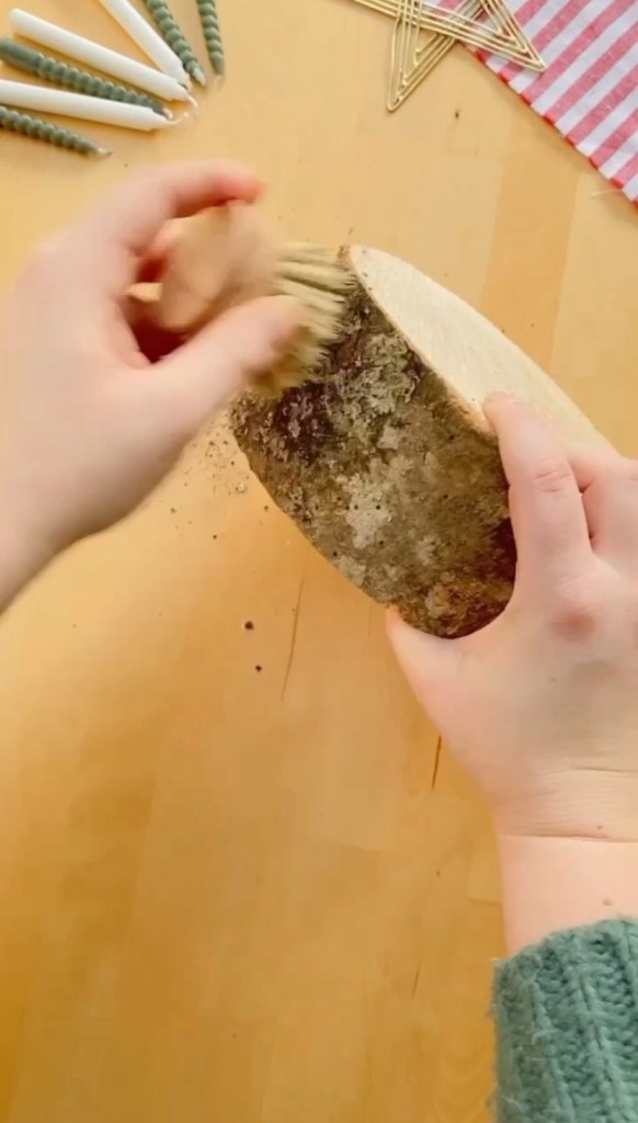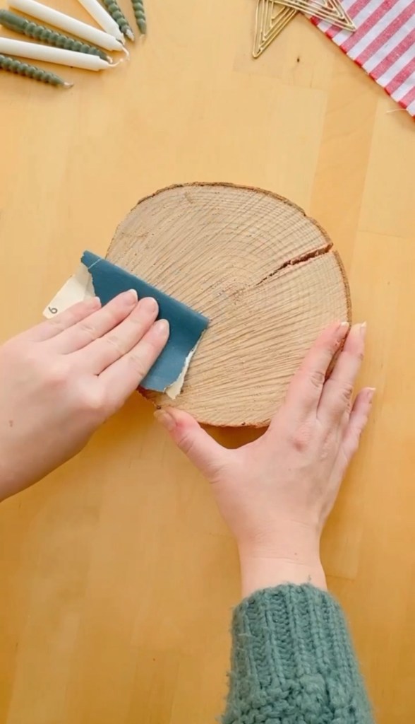 1.Commencez par nettoyer et poncer le rondin de bois.