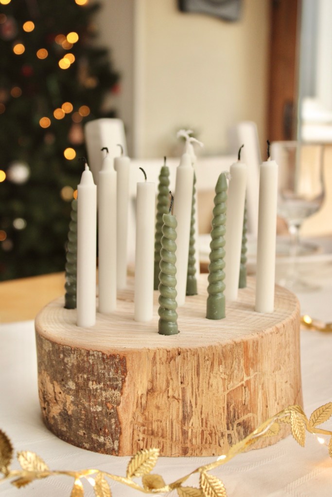 Nouvelle journée dans le calendrier, nouvelle case à ouvrir ! Pour ce 14e DIY, je vous partage un classique de la décoration de Noël. Celui qui est indémodable, facile à faire et customisable à souhait. Pour cette version du centre de table, j’ai utilisé principalement du bois. En vrai, c’est le seul éléments utilisé ici ! Mais surtout, c’est du bois de récup’ destiné à partir à la cheminée, alors niveau upcycling, on ne peut pas faire mieux !