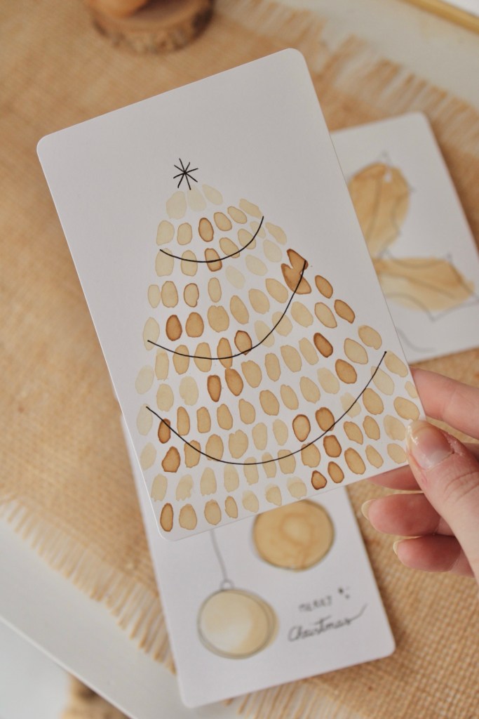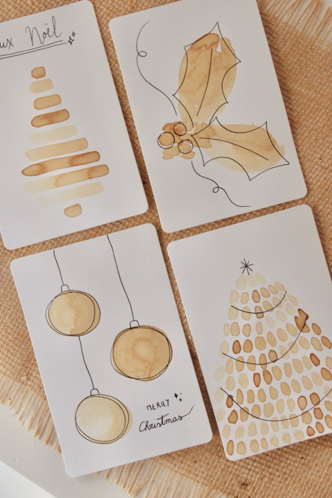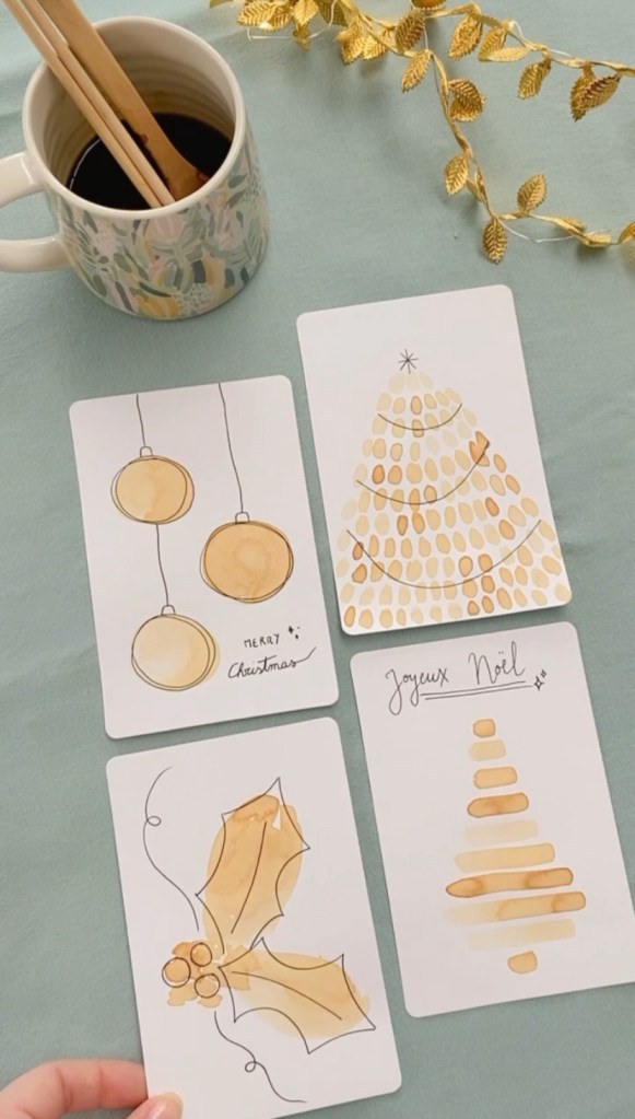 Je clôture avec enthousiasme ce Calendrier de l’Avent Créatif en partageant un DIY qui, bien que familier pour certains, demeure une option pleine de charme. Précédemment présenté lors de la période d’Halloween, je revisite cette expérience en vous proposant cette fois-ci des cartes de vœux au « café ».