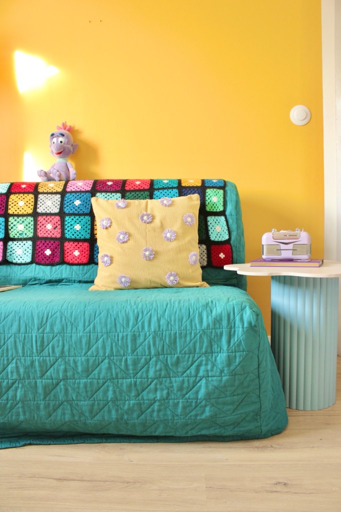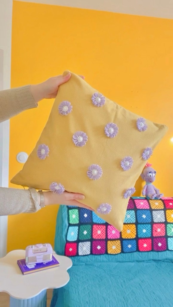 Le printemps arrive dans quelques jours et avec lui sont florilège de fleurs et couleurs pop. Alors pourquoi ne pas associer les 2 pour ce DIY tout en douceur ? L’idée ici est d’ajouter une touche printanière dans ma déco, en customisant tout simplement cette housse de coussin. Mais attention, pour pimper cette housse, je n’ai pas utilisé n’importe quel objet… Vous connaissez le Fleuritou ? C’est une trouvaille bien vintage, que j’ai déniché sur Vinted il y a quelques temps. Le Fleuritou est un petit objet en plastique (vive les années 70’s !) qui permet de réaliser des petites fleurs en laine. Mais pour en savoir plus, je t’invite à te rendre sur mon compte Instagram où une revue complète et un test grandeur nature a été réalisé.